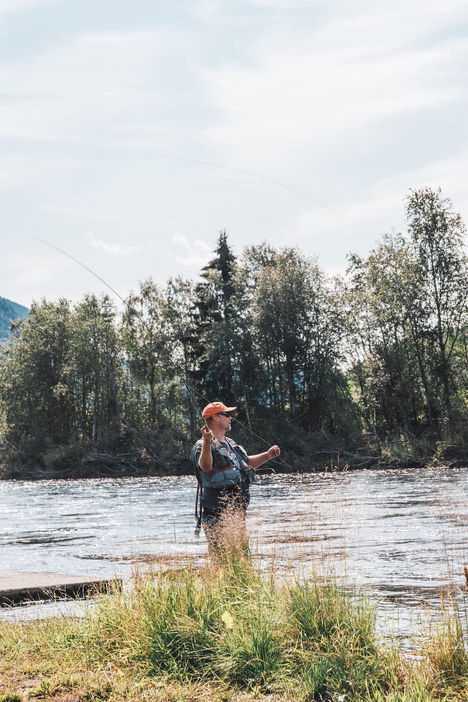 Type af fiskeri: Fluefiskeri og spinnefiskeri med kastestang