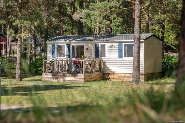 I Strandbyn bor du i campingens största stugor på 39 kvm med havsnära läge och perfekt gångavstånd i badrocken till havet.