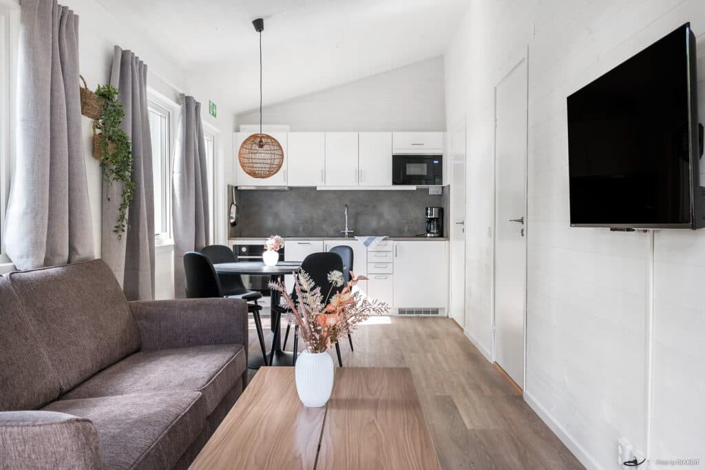 Hjertelig velkommen til Tallstuga – en helt nybygget hytte i Åhus! Hytten er en af de største på destinationen og er udstyret med de fleste faciliteter, du kan have brug for til en behagelig og afslappende ferie. Her bor du på 45 kvm i et friskt miljø med plads til op til 4 personer. Sovepladserne er fordelt i to soveværelser med en dobbeltseng i det ene og to separate senge i det andet. I hyttens opholdsrum findes et fuldt udstyret køkken med service, ovn, komfur, mikroovn, køleskab, fryser, opvaskemaskine og kaffemaskine. Der er også en sofa og TV til hyggelige stunder. Udenfor hytten er der en terrasse, hvor du kan nyde din morgenkaffe eller en god middag. Desuden findes bruser, toilet, vaskemaskine og tørretumbler i hytten.