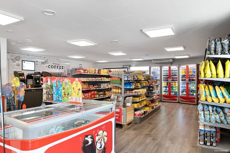 I vår butik finner du allt du behöver för att campinglyckas! Till doften av nybakat bröd hittar du leksaker, grilltillbehör, picknickattiraljer, de nödvändiga basvarorna och färska grönsakerna såväl som godis och snacks för lyckade semesterkvällar.