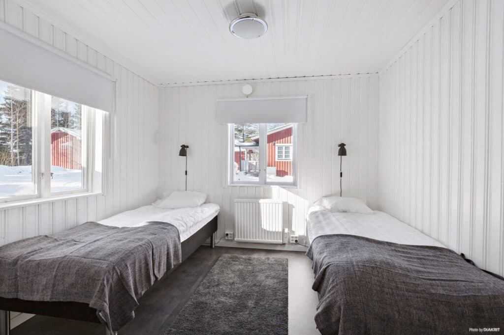 Sengepladserne er fordelt på fire enkeltsenge og en sovesofa med plads til to personer.