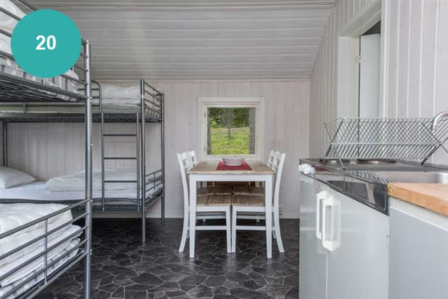 Byälvstuga Plus er 23 kvm, og der er plads til i alt fire personer. I hytten står to køjesenge, og der er dyner og puder til alle senge. Her er en kogeniche med to kogeplader, køleskab med fryseboks, og der er udstyret med køkkenredskaber og kaffemaskine. TV, køkkenbord, fire stole, klædeskab, brusebad og toilet. Der er en lille overdækket terrasse. Der er fire picnic-borde tilgængelige på det fælles græsområde foran hytten. Hytte nummer 20 har en anden planløsning end de øvrige i samme kategori, men den har samme antal senge. Hvis der ønskes en specifik planløsning, så vælg venligst en specifik hytte ved bookingen.