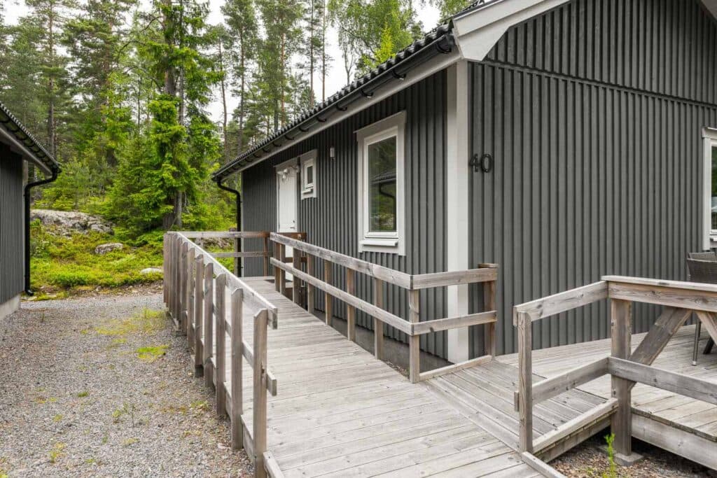 Vänernstuga er 44 kvm og har i alt seks senge. Hytte 40-43 har grå yderside og to soveværelser, hvoraf et med en dobbeltseng og et med to køjesenge. Der er dyner og puder til alle hyttens senge. Køkken med køkkenredskaber, komfur/ovn, mikroovn og kaffemaskine. Køkkenbord med seks stole, sofa og TV. Badeværelse med brusebad og toilet. Terrasse med bord og stole til seks personer. Vänernstuga 30 er rødmalet og har tre soveværelser, hvoraf to soveværelser med to enkeltsenge og et soveværelse med dobbeltseng og ingen opvaskemaskine. Hytte 40 har rampe til døren.