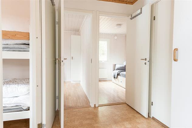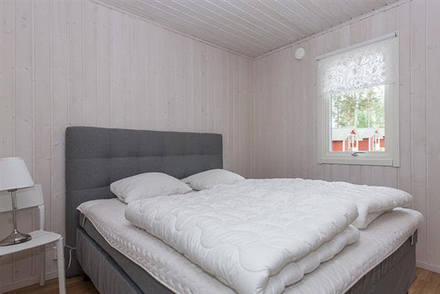 Vänernstuga Plus er 44 kvm, og der er plads til i alt otte personer. Hytten har tre soveværelser, et med en dobbeltseng, et med to køjesenge og et soveværelse med to enkeltsenge. Der er dyner og puder til alle hyttens senge. Køkkenet er udstyret med køkkenredskaber, komfur/ovn og kaffemaskine, køkkenbord, otte stole, sofa og TV. Badeværelse med brusebad og toilet. Terrasse med bord og stole til otte personer. Vänernstuga Plus nummer 15 har ingen fryser, men en mindre fryseboks.