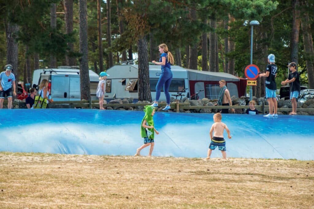Prøv vores sjove hoppepude som findes på legepladsen nede ved stranden. Den er meget populær blandt både små og store børn, og samtidig kan du som forælder nyde de smukke og åbne udsigter.