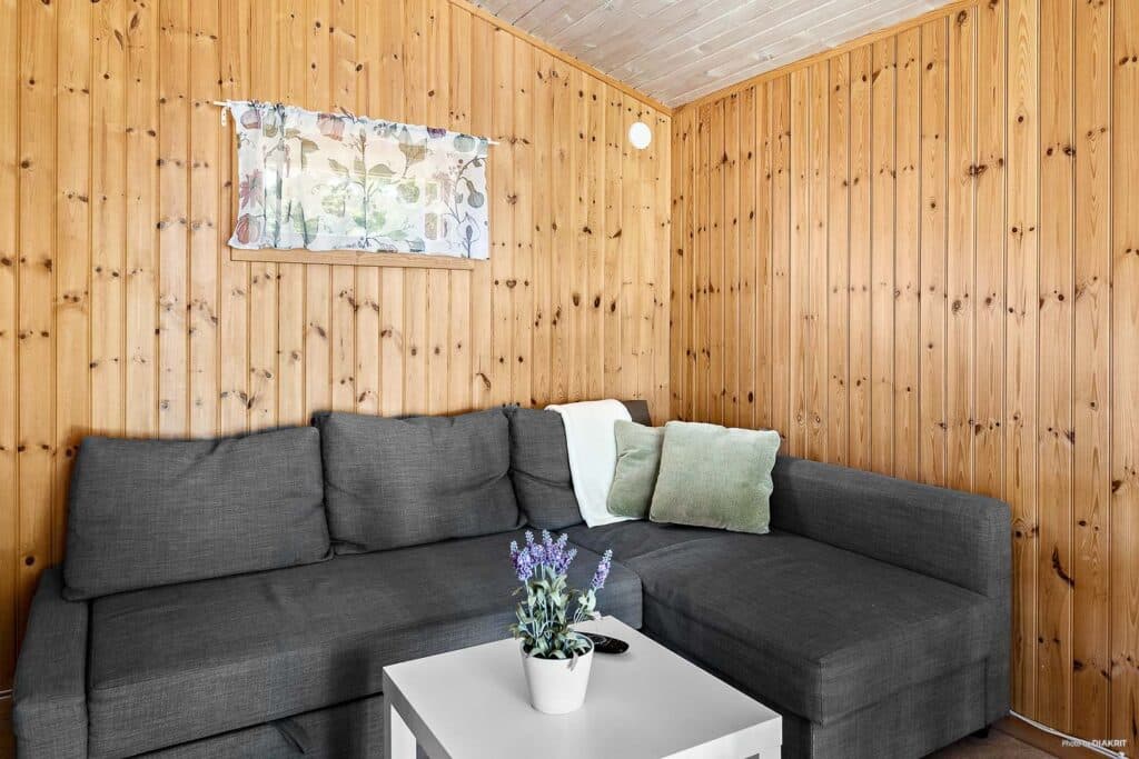 Sengepladserne er fordelt på en køjeseng og en sovesofa med plads til to personer.