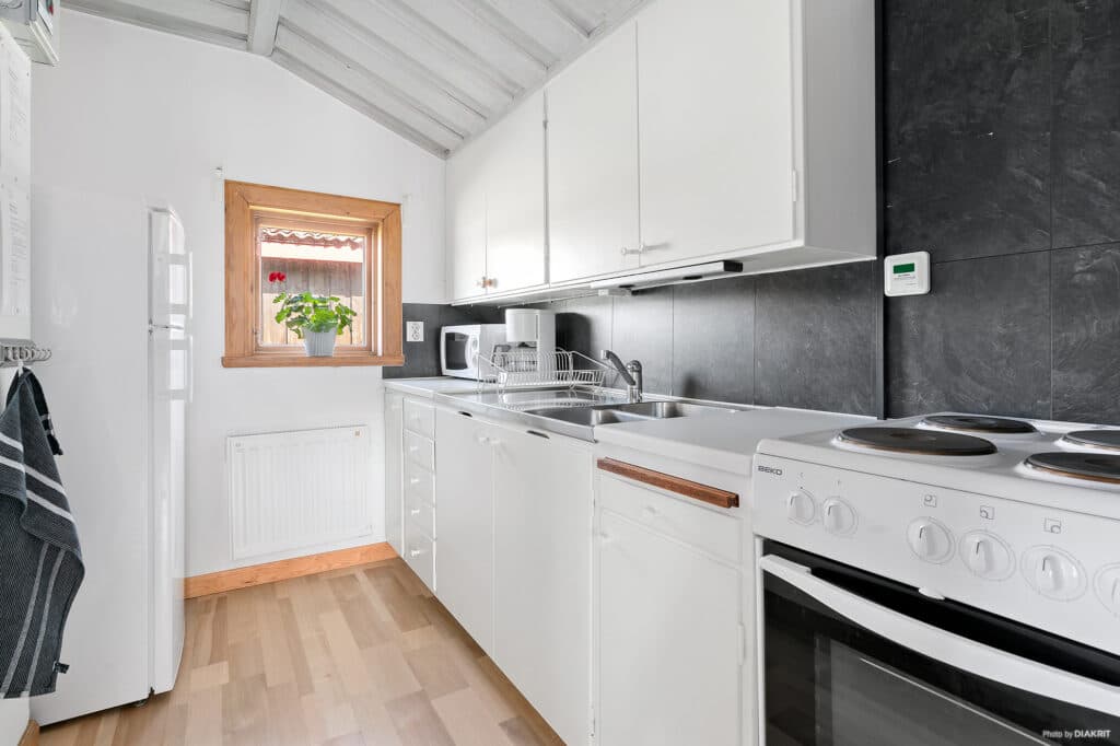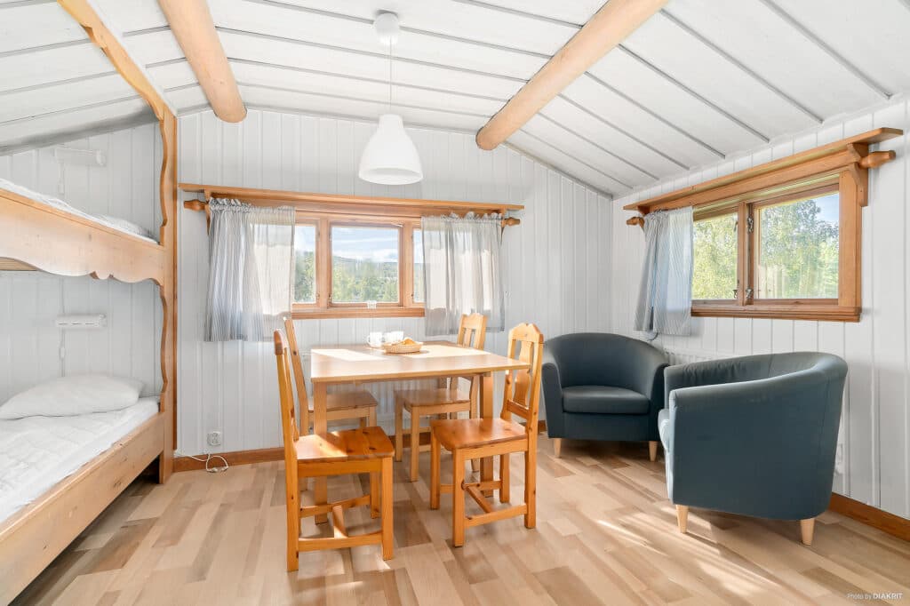 Backastuga er 24 kvm og har et separat soverum med en køjeseng samt et kombineret alrum og køkken. I alrummet er der en sofa, åben pejs og tv samt en køjeseng. Der er dyner og puder til alle hyttens senge. Køkkenafdeling med komfur, ovn, mikroovn, emhætte, køl, frys og kaffemaskine. Der er et toilet, men intet brusebad i hytten, det findes i servicehusene på campingpladsen. Hytten har parkeringsvarmerstik.