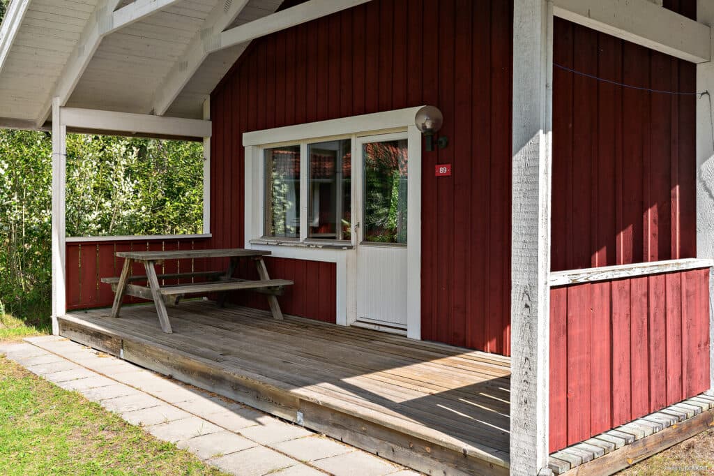 Dommarbackstuga Plus er en hytte på 41 kvadratmeter med plads til op til seks personer. Sovepladserne er fordelt på to soveværelser med køjesenge, hvor underkøjen er bredere. Dyner og puder findes til alle senge.