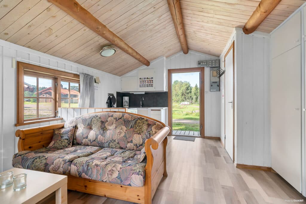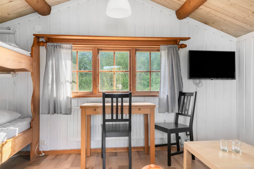 Orestuga er 18 kvm og har plads til i alt to personer. Der er en køjeseng i hytten, og der er dyne og puder til alle senge. Der er et toilet i hytten, men ingen bruser, det er tilgængeligt i servicebygningen. Der er også tv og spiseplads samt et køkken udstyret med komfur, ovn, køleskab og kaffemaskine. Der er motorvarmerudtag til hytten.