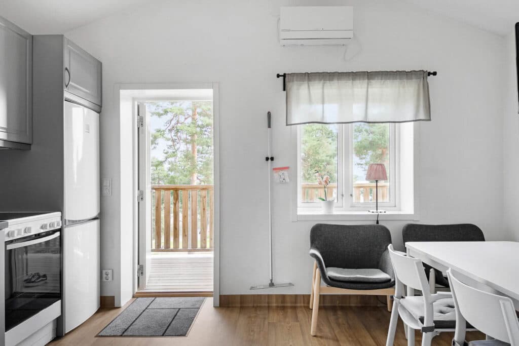 Kysthytten er præcis, som navnet antyder. En hyggelig hytte med den bedste udsigt over kysten! Perfekt til dig, der ønsker at vågne op til smukke panoramaudsigter og nyde den dejlige omgivelse. Kysthytterne er den største hyttetype på destinationen og har en størrelse på 24 kvm. De er hyggelige hytter med fire senge fordelt på to køjesenge med en bredde på 90 cm i undersengene. I hytterne er der et veludstyret køkken/opholdsrum med komfur, køleskab, fryser, kaffemaskine, elkedel og TV samt to behagelige lænestole. I hytten er der også separat toilet og bruser.