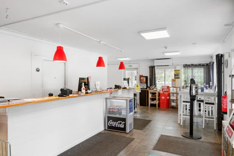 I vores kiosk finder du alt det vigtigste til hyggelige campingaftener. Her er der slik, chips, nødder og lækre drikkevarer. For alle is-monstre derude er der også en hel frysedisk med de allerbedste is.