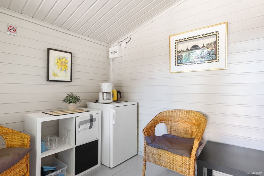 Søger du mindre og mere enkel indkvartering, er denne hytte det rette valg for dig. Vores Svan-hytter er 7 kvadratmeter, og har to sengepladser. Der er køleskab og kaffemaskine, men ikke tekøkken eller rindende vand. Faciliter som brusebad og toilet kan du finde i servicehuset, som ligger tæt på Svan-hytterne. Et hyggeligt og billigt indkvarteringsalternativ til dig, som ikke behøver så meget. Du er også velkommen til at tage din firbenede ven med.