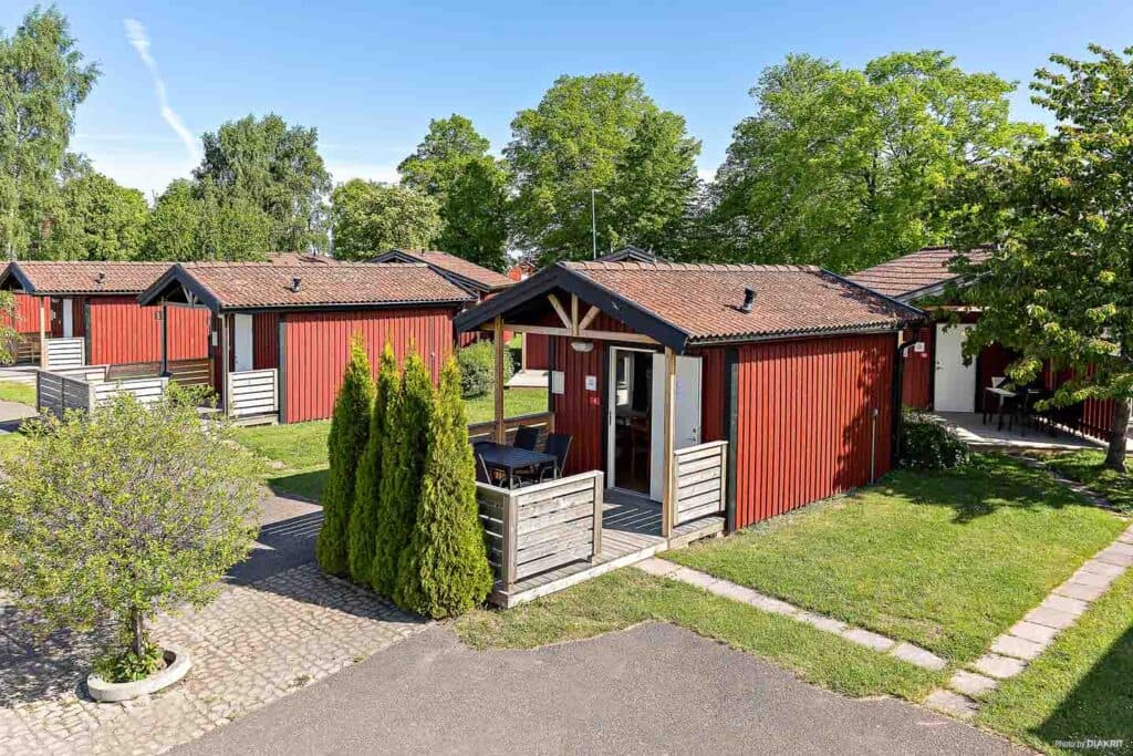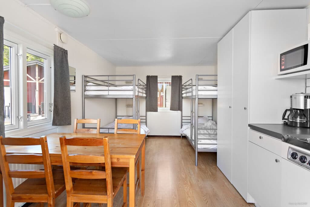 Vätternstuga er vores 6-sengshytter på 34 kvm, som ligger aller tættest på vandet. Hytterne har badeværelse med brusebad og toilet. Hver hytte har et opholdsrum med tv, en møbleret terrasse og uderum med udsigt over søen. Hytterne har to soveværelser, hvoraf det ene har to køjesenge og det andet har en dobbeltseng. Der er dyner og puder til alle hyttens senge. Køkkenet er udstyret med porcelæn og andet køkkenudstyr såsom opvaskemaskine, mikrobølgeovn, kaffemaskine, køleskab og fryser. Der er parkeringsplads ved hytten.