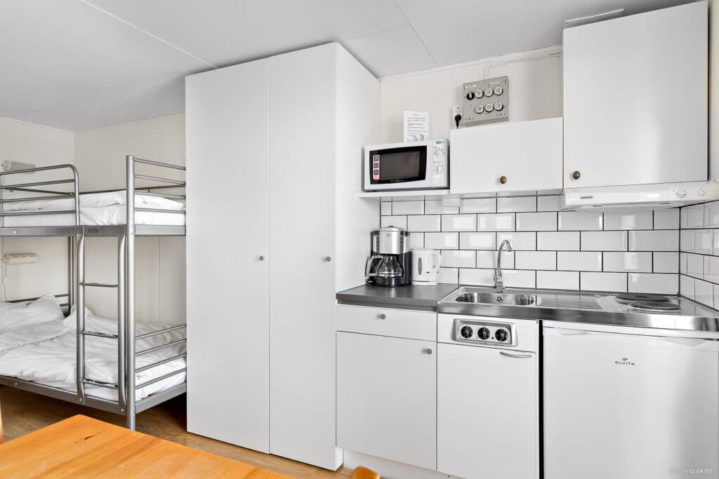 Polkagrisbyn er vores dobbelthuse på 18 kvm med fire sengepladser. I hytten er det to køjesenge, og der er dyner og puder til alle hyttens senge. Dobbelthusene er udstyret med tekøkken og mere simpelt køkkenudstyr, spiseplads til fire personer, køleskab med fryser, mikrobølgeovn, kaffemaskine, tv samt badeværelse med brusebad og toilet. Uden for hytten er der en terrasse, der er møbleret om sommeren. Der er parkeringsplads ved hytten.