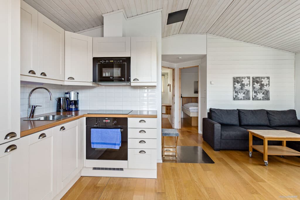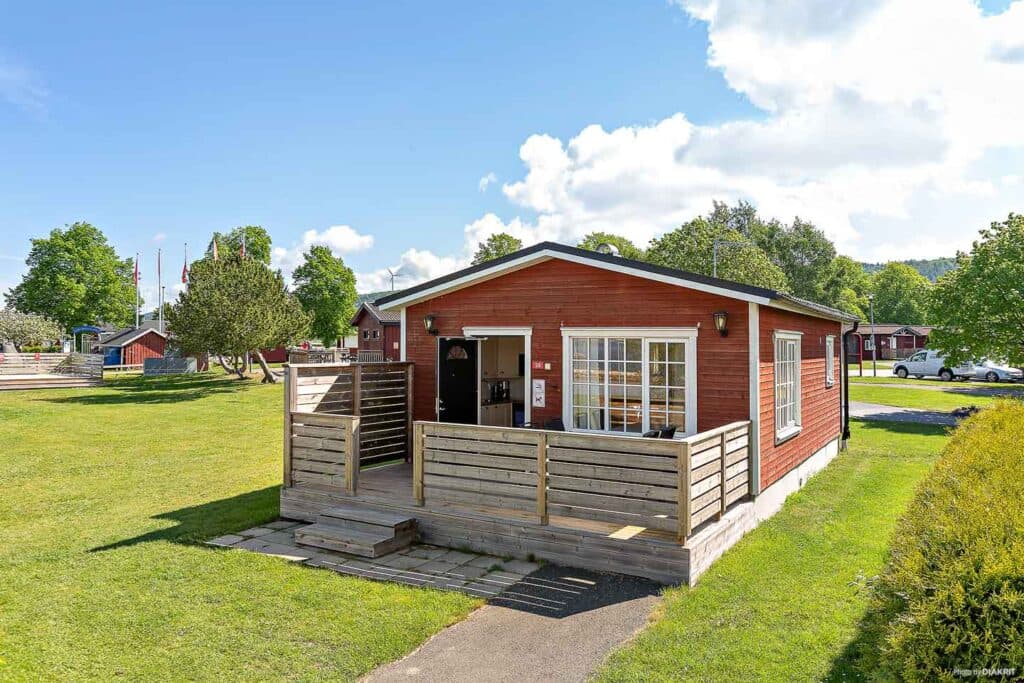 Vätternstuga er vores 6-sengshytter på 34 kvm, som ligger aller tættest på vandet. Hytterne har badeværelse med brusebad og toilet. Hver hytte har et opholdsrum med tv, en møbleret terrasse og uderum med udsigt over søen. Hytterne har to soveværelser, hvoraf det ene har to køjesenge og det andet har en dobbeltseng. Der er dyner og puder til alle hyttens senge. Køkkenet er udstyret med porcelæn og andet køkkenudstyr såsom opvaskemaskine, mikrobølgeovn, kaffemaskine, køleskab og fryser. Der er parkeringsplads ved hytten.