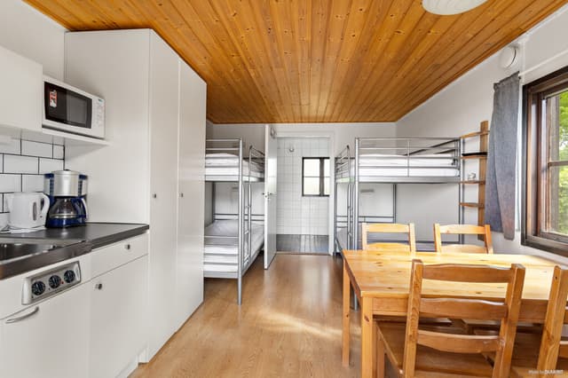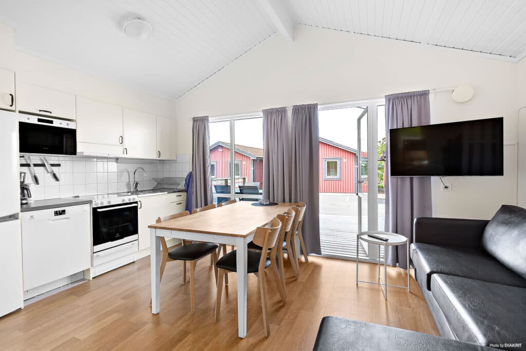 Vätternstuga er vores 6-sengshytter på 34 kvm, som ligger aller tættest på vandet. Hytterne har badeværelse med brusebad og toilet. Hver hytte har et opholdsrum med tv, en møbleret terrasse og uderum med udsigt over søen. Hytterne har to soveværelser, hvoraf det ene har to køjesenge og det andet har en dobbeltseng. Der er dyner og puder til alle hyttens senge. Køkkenet er udstyret med porcelæn og andet køkkenudstyr såsom opvaskemaskine, mikrobølgeovn, kaffemaskine, køleskab og fryser. Der er parkeringsplads ved hytten.