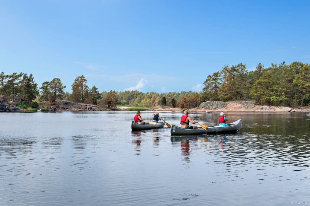 Kano er den perfekte måde at opleve det idylliske skærgårdsmiljø omkring Gunnarsö på. Uanset tidligere erfaring er en padletur en sjov aktivitet for både store og små campister.