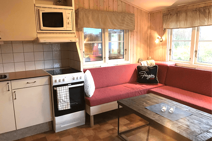 Her er en hyggelig hytte til op til tre personer. Sengene finder du i det separate soveværelse, hvor du sover godt i en enkeltseng og en køjeseng. I hytten er der komfur/ovn, mikroovn, kaffemaskine samt køkkenudstyr til tre personer. For dig som vil slappe lidt ekstra af om aftenen er der også et TV i hytten med de frie kanaler. Knektahytten er også udstyret med toilet og brusebad. Ikke nok med det, så er der også en terrasse uden for døren, som er udstyret med et bord og fire stole. Perfekt for dig der gerne vil nyde det lidt ekstra i ferien. Du skal måske unde dig selv morgenkaffen udendørs. I denne hytte er husdyr også tilladt.