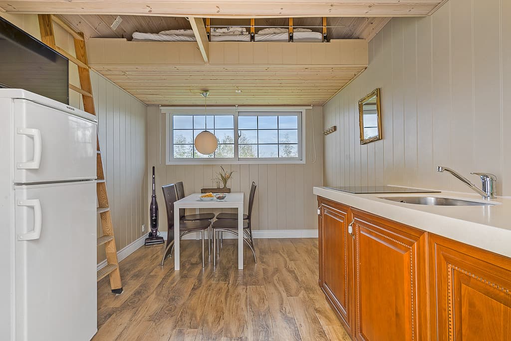 Bemærk venligst, at der er en stige for at komme op til loftet, hvor sengene er, så hytten er perfekt til familien eller vennerne, men ikke egnet hvis nogen i selskabet ikke kan benytte stigen.