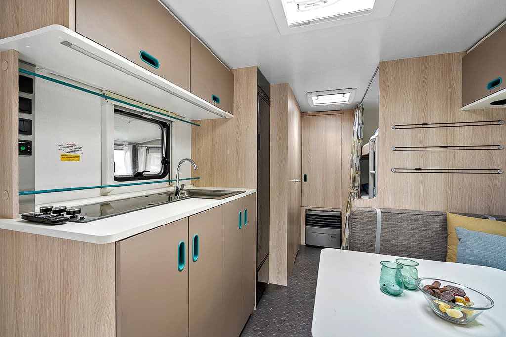 I campingvognen er der plads til op til 7 personer fordelt på en mindre seng, tre køjesenge og en sovesofa. Derudover findes der et køkken med køleskab med lille fryser, bad og toilet, et stort fortelt med spiseplads og en lille veranda med udsigt over fodboldbanen. I vognen findes dyner og puder. Medbring dine egne sengetøj eller bestil et linnepakke fra os i det sidste trin i bookingen.