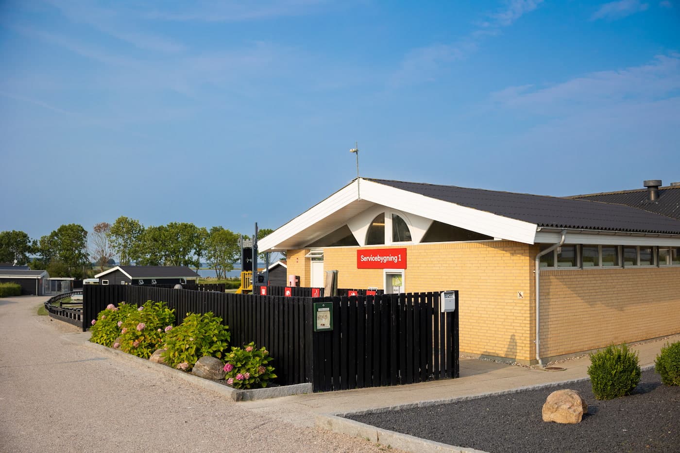 På pladsen finder du én servicebygning med herre-/dame bad på den ene side af bygningen og toiletter på den anden side. Her er også 2 familierum, baby puslerum og handicaptoilet/bad.