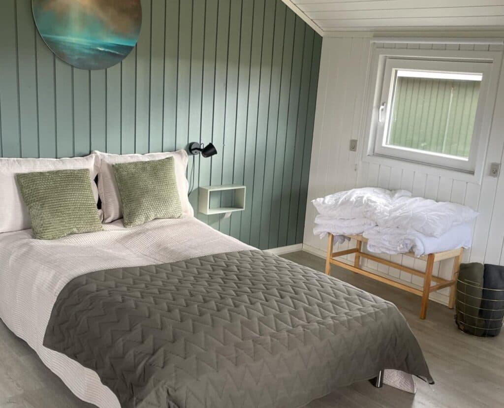 Velkommen til en hyggelig hytte med en komfortabel 140 cm seng og en praktisk sovesofa med plads til op til to personer – perfekt til to voksne og to børn. Her bor I hyggeligt med et køkken og opholdsrum i ét, udstyret med alt, hvad I behøver: køleskab, komfur, spisebord og TV. I hytten er der dyner og puder til hele selskabet. Medbring jeres eget sengelinned eller book det nemt på stedet. Nyd morgenkaffen eller aftensolen på den lille terrasse med dejlig udsigt mod syd. Hytterne ligger desuden tæt på servicebygningen, hvor I finder toilet og bruser.