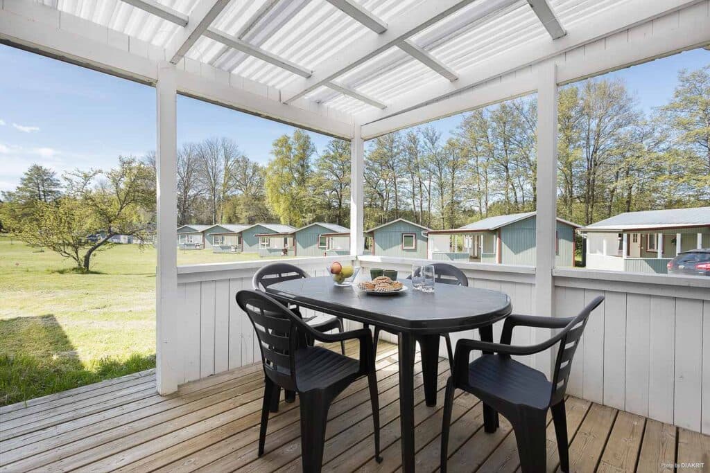 Lille og hyggelig 4-sengshytte med alle vigtige detaljer. Hytten kan fåes i to udgaver. Hytte 3, 10, 13, 15, 21, 24, 25 og 26 er udstyret med en køjeseng og en sovesofa. De resterende hytter har 2 køjesenge. Der forefindes dyner og puder i hytten. Fuldt udstyret køkken med køleskab og fryser, mikrovn, komfur med ovn samt kaffemaskine. Badeværelse med bruser og toilet. Overdækket veranda med enkle havemøbler, hvor de skønne sommeraftener kan nydes.