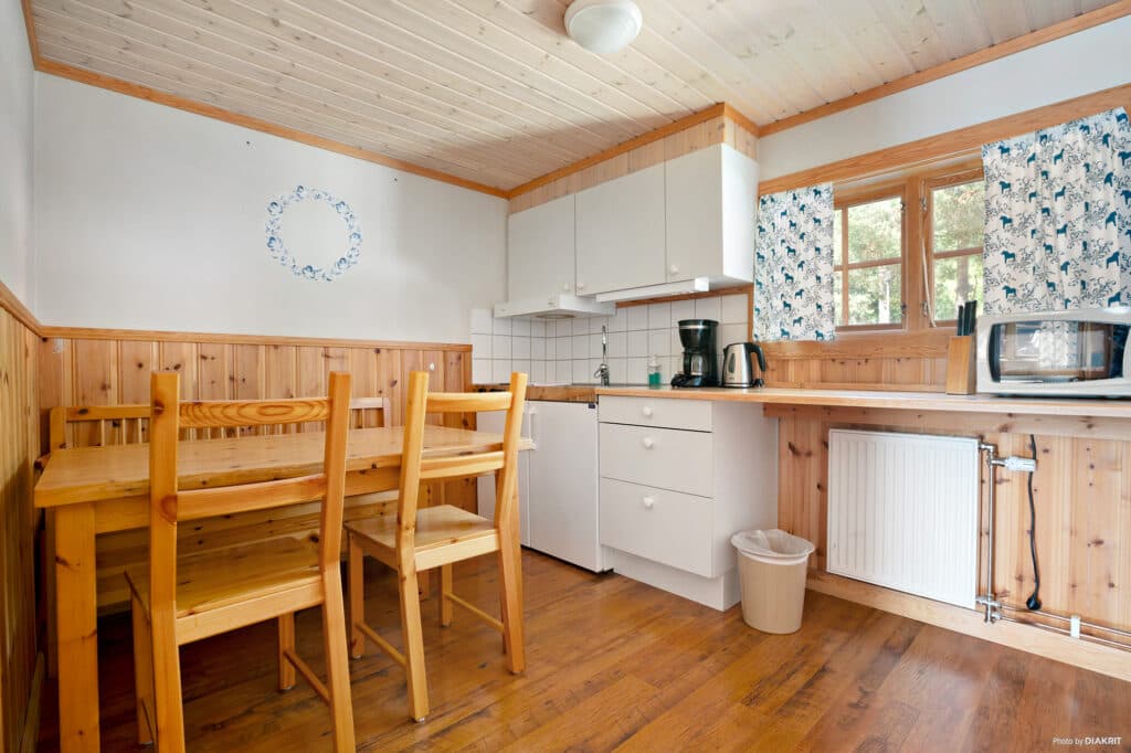 Risagården er en hytte på 23 kvm i dalastil. I hytten er der fire senge fordelt på to køjesenge. Der er dyner og puder til alle hyttens senge. I hytten er der TV samt en kogeniche med komfur, mikroovn, elkedel og køleskab med frostboks. Badeværelse med toilet og brusebad.