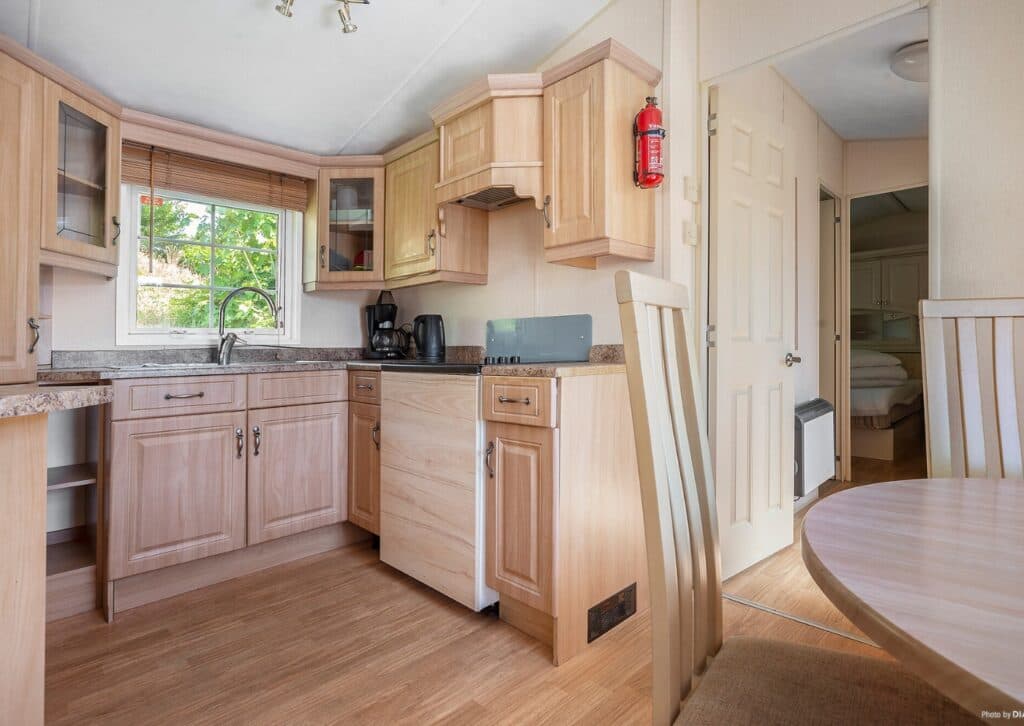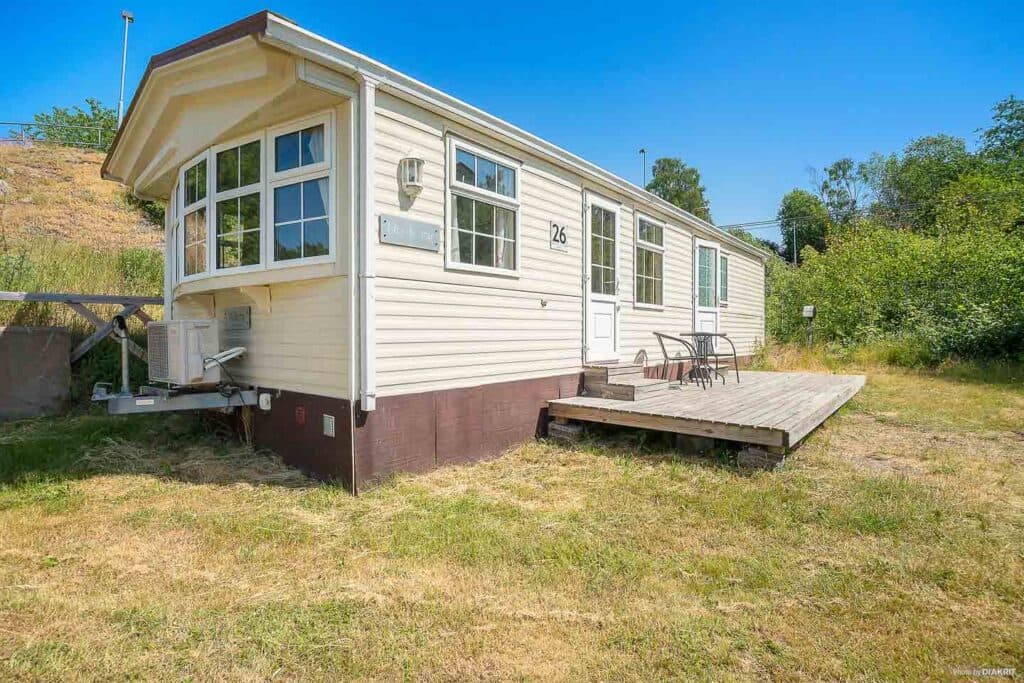 Fuldt udstyret villavogn med plads til fem personer. Vognen har et soveværelse med dobbeltseng og god opbevaring af tøj. Der er endnu et soveværelse med 2 enkeltsenge, samt en 120 cm bred sovesofa i alrummet. I villavognen er der badeværelse med brusebad og toilet. På den møblerede veranda kan du nyde dagens første kaffe eller et godt måltid med dem, du holder af.