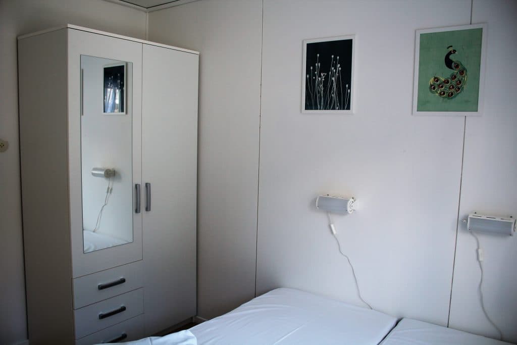 Værelse til 2 personer med to enkeltsenge. Værelset er udstyret med et lille køleskab. Der er adgang til brusebad, toilet og køkken i fællesrummene. Det er muligt at leje sengelinned i receptionen.