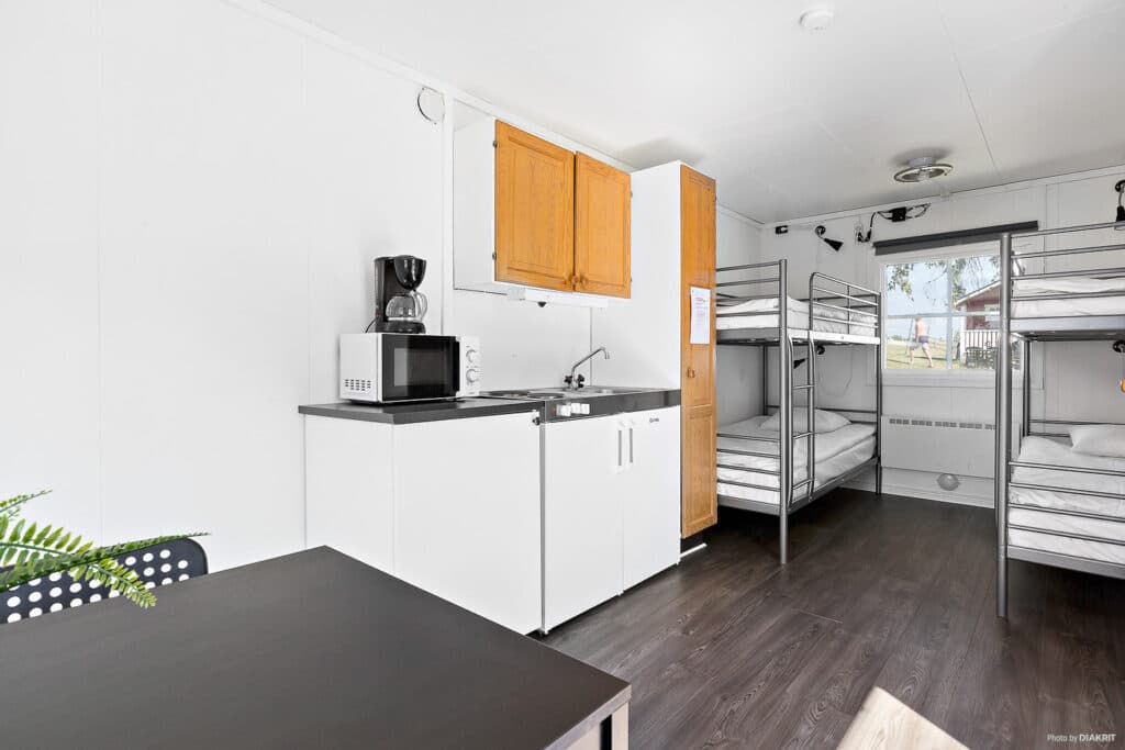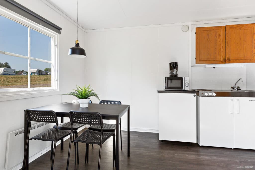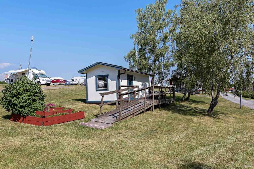 Velkommen til en enkel men hyggelig hytte på 16 kvm med rampe op til døren. Hytten har to køjesenge med plads til fire personer. Hytten er også udstyret med et tekøkken med køleskab, fryser, mikrobølgeovn og kaffemaskine. Du adgang til faciliteter som toiletter og brusere i det nærliggende servicecenter. Uden for døren er der en hyggelig terrasse, hvor du kan nyde morgenkaffen og gode feriemiddage. Ønsker du at tage din firbenede ven med? Kæledyr er velkomne i disse hytter.