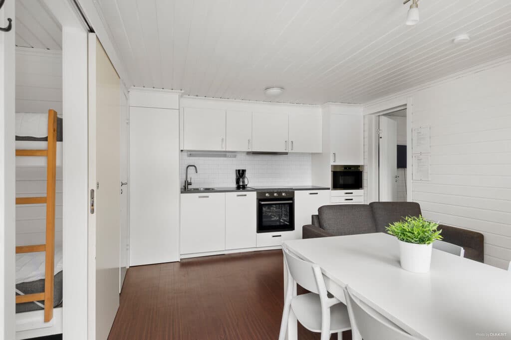 Forkæl dig selv i veludstyrede Nydalastuga med renoveret køkken og opholdsrum. Hytterne er 30 kvm store og har plads til 6 personer. I det store soveværelse kan I hygge jer i sengen og se en god film på tv’et. I det andet rum skiftes børnene til at sove i køjesengenes spændende ekstrasenge. Dyner og puder er tilgængelige til alle senge i hytten. I det kombinerede køkken/opholdsrum findes køleskab, fryser, komfur, ovn, kaffemaskine, opvaskemaskine og mikroovn. Der er også en sofa og tv. Badeværelset har bruser og toilet. Uden for døren kan I slappe af på den møblerede terrasse efter en dag på stranden eller i løbesporerne. Der er parkering ved siden af hytten