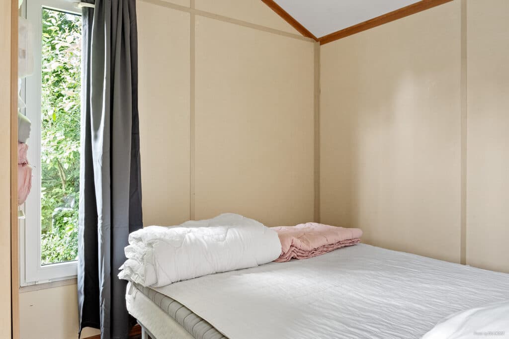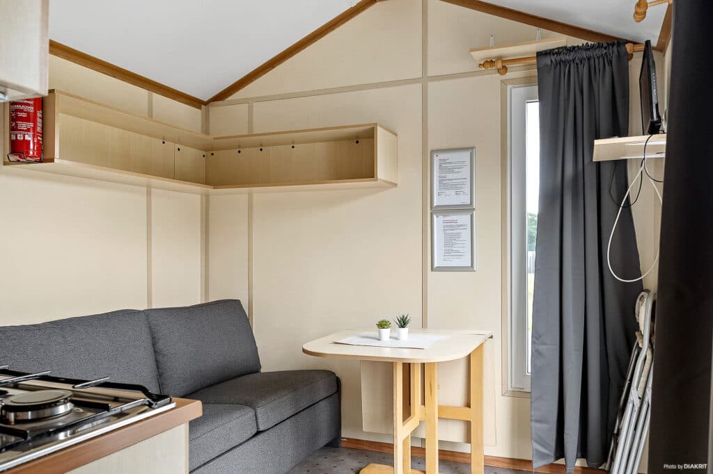 Hyggelig hytte på 20 kvadratmeter med et soveværelse med dobbeltseng, brusebad/wc samt et køkken med sovesofa. I alt fire senge. Til hytten er der også en grill man kan låne, giv besked i receptionen ved ankomst. Perfekt til aftenens middag!