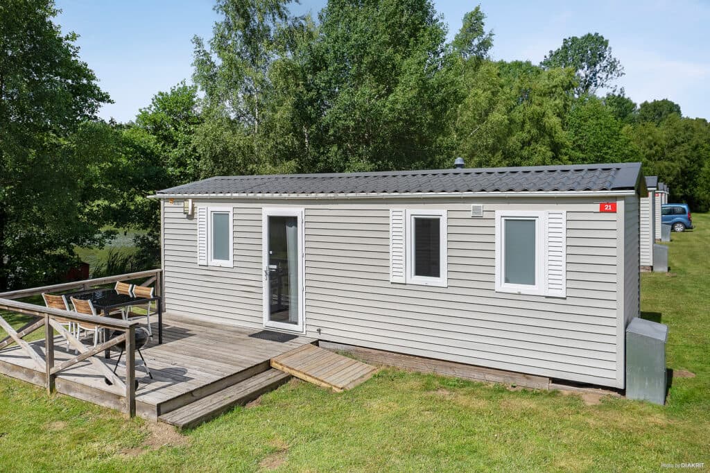 Disse husvogne ligger ved vores fiskesø på område 2. Sørg for at booke dem inden sommeren, hvor der er fantastisk aftensol ved søen. Denne husvogn har et soveværelse med to enkeltsenge, et værelse med en dobbeltseng samt en seng i alrummets sovesofa. Her er badeværelse med brusebad og separat toilet. Hverdagsrum med køkken hvor du nemt tilbereder aftenens middag. Perfekt for den lille familie med to voksne og tre børn. Der kan også lånes en grill! Perfekt når alle dagens måltider skal tilberedes.
