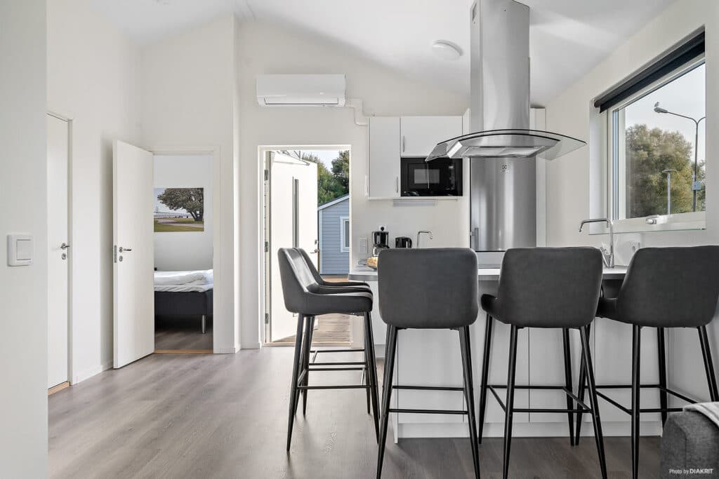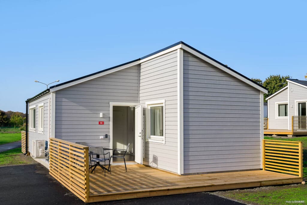 Velkommen til vore Bunkeflohytte! Her bor I lyst med en åben planløsning på 40 kvm. Den møblerede terrasse indbyder til samvær efter en skøn campingdag (om vinteren har vi kun et sæt terrassemøbler fremme). Hytten har to soveværelser, et med dobbeltseng og et med to enkeltsenge. I alrummet er der en sovesofa, hvor yderligere to personer kan sove dejligt, og det betyder, at der er plads til op til seks personer. I det fuldt udstyrede køkken er der komfur, ovn, køl og frys, opvaskemaskine, mikroovn og selvfølgelig kaffemaskine. Hytten er også udstyret med WiFi og TV. Badeværelse med bruser, toilet og vaskemaskine findes i hytten. Der er parkering ved siden af hytten. Nogle af hytterne har udsigt over Øresundsbroen.