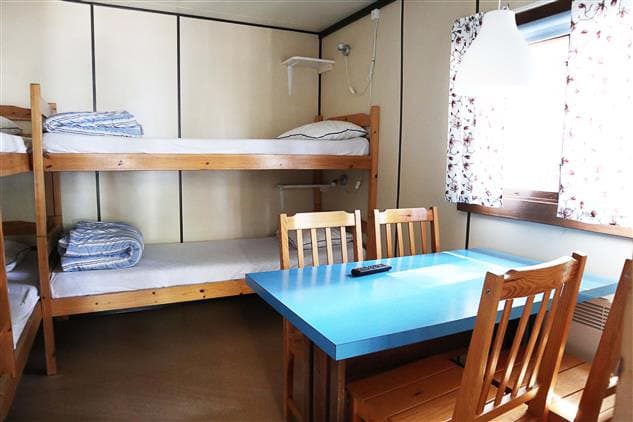 Röjeråstugan er 15 kvm og har plads til i alt fire personer. I hytten er der to køjesenge og dyner og puder til alle hyttens senge. Køkkenet er udstyret med komfur, mikroovn, køleskab, kaffemaskine samt husgeråd. Der er tv i hytten samt en overdækket altan. Badeværelset har brusebad og toilet.