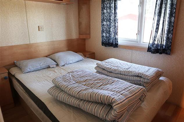 Mobilehome Vikarby er vores mobilhomes med plads til seks personer, og de er 32 kvm. Mobilehomet har tre soveværelser, et med dobbeltseng, et med to enkeltsenge samt et med køjeseng. Der er dyner og puder til alle hyttens senge. Badeværelset har brusebad og toilet. Køkkenet er udstyret med køleskab, fryser, komfur med ovn, mikroovn, kaffemaskine og husgeråd. Der er tv i hytten. Veranda med stole og bord.