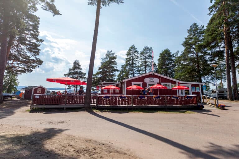 For dig, der gerne vil spise ude, ligger Restaurant Sjövillan kun få minutters gang fra campingpladsen. Her mødes du af en afslappet atmosfære, fantastisk udsigt over Siljan og en menu med noget for enhver smag. Se menuen her.