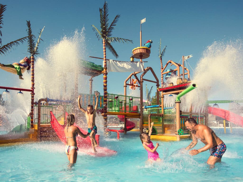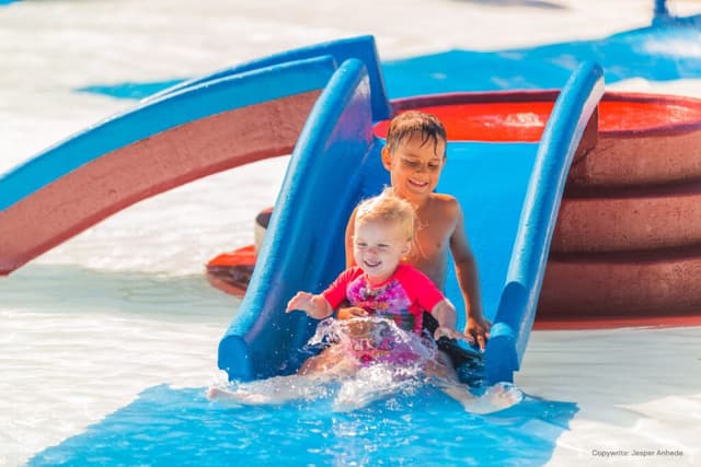 Vandlandet på Skara Sommarland har også meget til vores mindste campister. I poolområdet Lagunen findes mere simple vandrutsjebaner og Piratøen er en storfavorit blandt alle aldre. Plaskende eventyr venter.