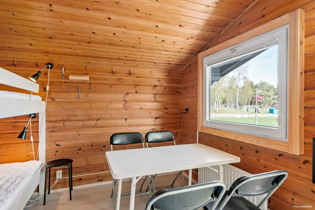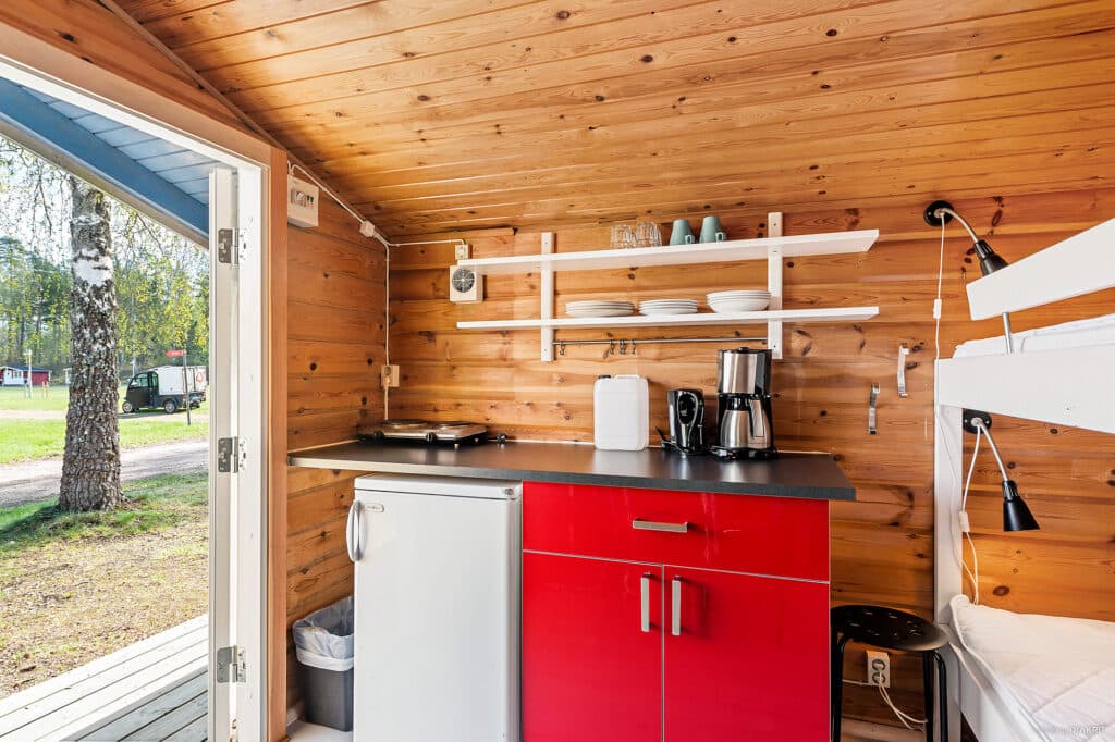 Lundbytorp ligger i et roligere område af campingpladsen, lidt længere væk fra receptionen og indgangen. Det er en mindre hytte på 12 kvm med fire sovepladser fordelt på to køjesenge à 80 cm. Hver seng har madras, dyne og pude. Hytten er indrettet med spisebord og stole. Køkkenet har køleskab, to kogeplader, to gryder samt de vigtigste køkkenredskaber og service til fire personer. Hvis I ønsker en stegepande, er I meget velkomne til at låne en i receptionen. Der er ikke rindende vand i hytten, men der er vanddunk og opvaskebalje. Bad, toilet og større køkken findes i de fælles servicebygninger på området. Det er tilladt at tage sin firbenede ven med i denne hytte.