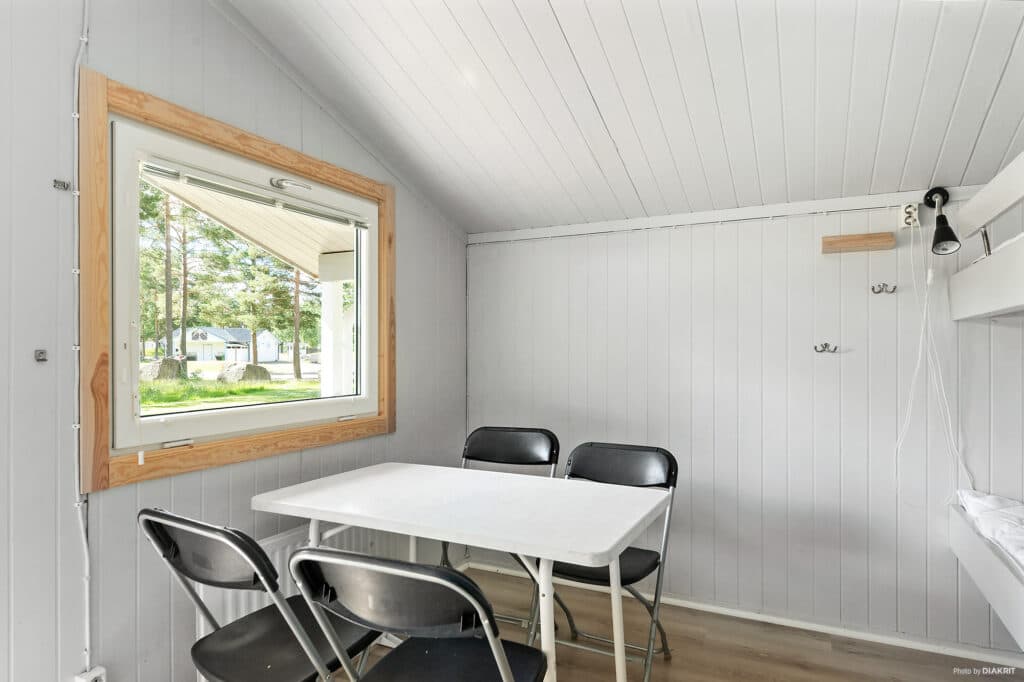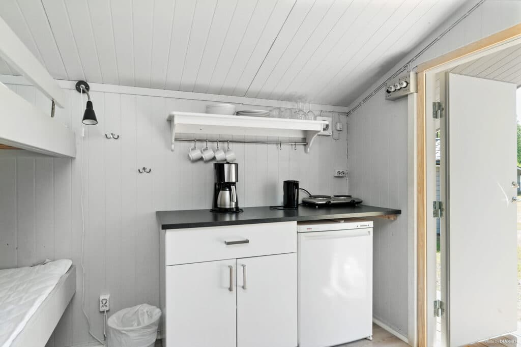 Disse hytter har en mere central placering på campingpladsen, tæt på både receptionen og indgangen til sommerlandet. Det er en mindre hytte på 12 kvm med fire sovepladser fordelt på to køjesenge à 80 cm. Hver seng har madras, dyne og pude. Hytten er indrettet med spisebord og stole. Køkkenet har køleskab, to kogeplader, to gryder samt de vigtigste køkkenredskaber og service til fire personer. Hvis I ønsker en stegepande, er I meget velkomne til at låne en i receptionen. Der er ikke rindende vand i hytten, men der er vanddunk og opvaskebalje. Bad, toilet og større køkken findes i de fælles servicebygninger på området. Det er tilladt at medbringe sin firbenede ven i denne hytte.