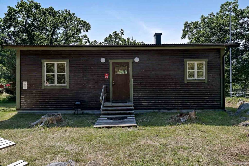 Bemærk venligst at hytten ligger på en bakke, og at der er trapper til at komme op til hytten.