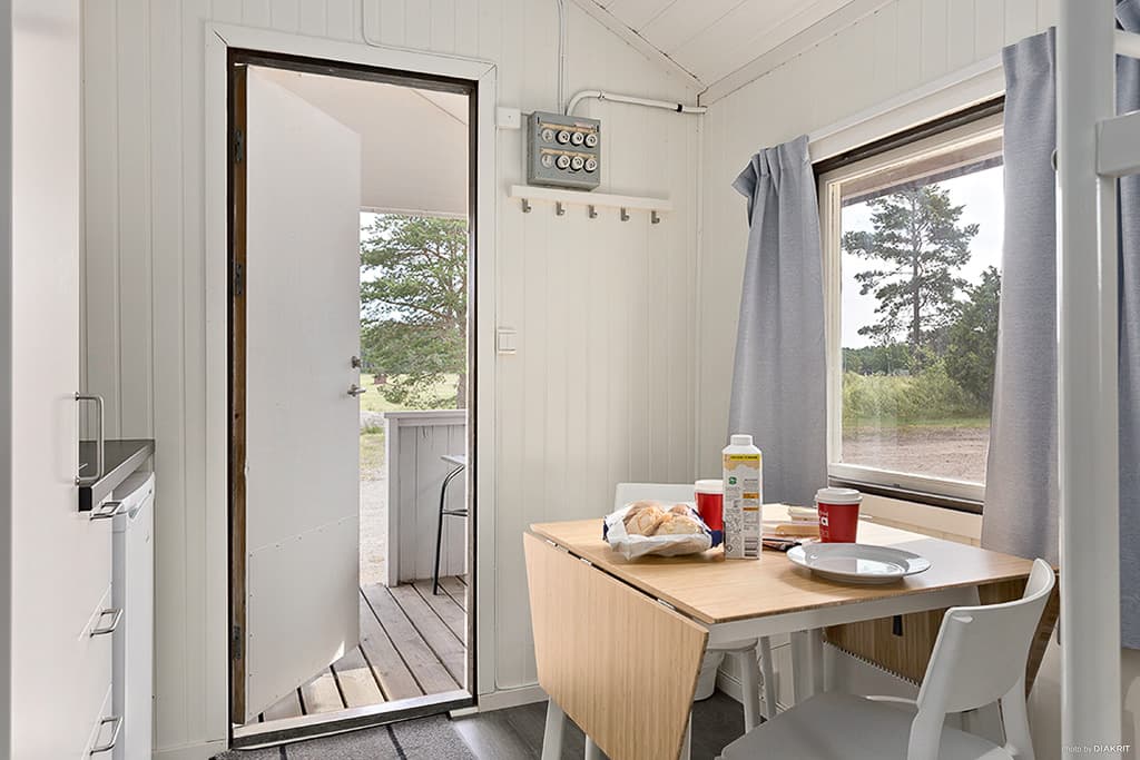 Indkvarteringen for dem, der ikke bor på en campingplads for at sidde indenfor hele dagen! Den enkle og hyggelige hytte er 12 kvm og har plads til fire personer – du vil sove godt om natten i køjesengene. Der er dyner og puder til alle hyttens senge. Om dagen vil du sikkert ud og opleve byen eller den smukke natur. Hytten ligger også tæt på legeplads. Hytten har et enkelt lille tekøkken med kogeplader og køleskab med fryserum. Der er adgang til bruser og toilet i den nærliggende servicehus. Parkering er tilgængelig ved siden af hytten.