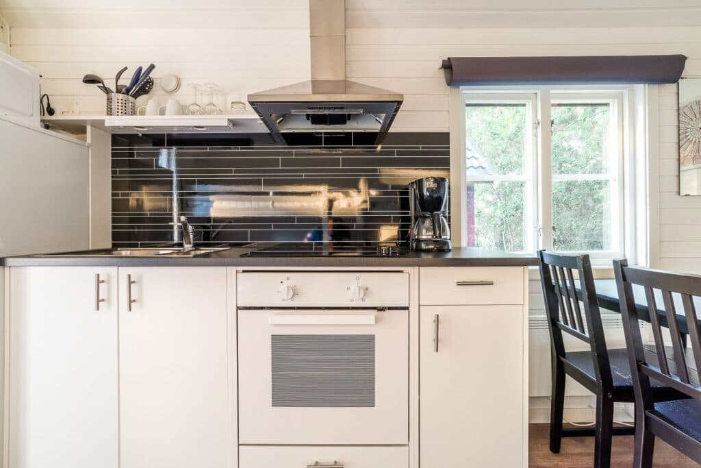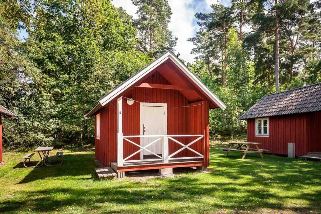 Hytten ligger ved strandkanten mod Västra søen, og fra terrassen har du en skøn udsigt over solnedgangen. Hver hytte er udstyret med fire senge samt bord og stole, kaffemaskine, komfur med ovn, køleskab samt køkkenudstyr til fire personer. I prisen indgår adgang til køkken, WC og brusebad i vores servicebygninger, som ligger et stenkast væk.