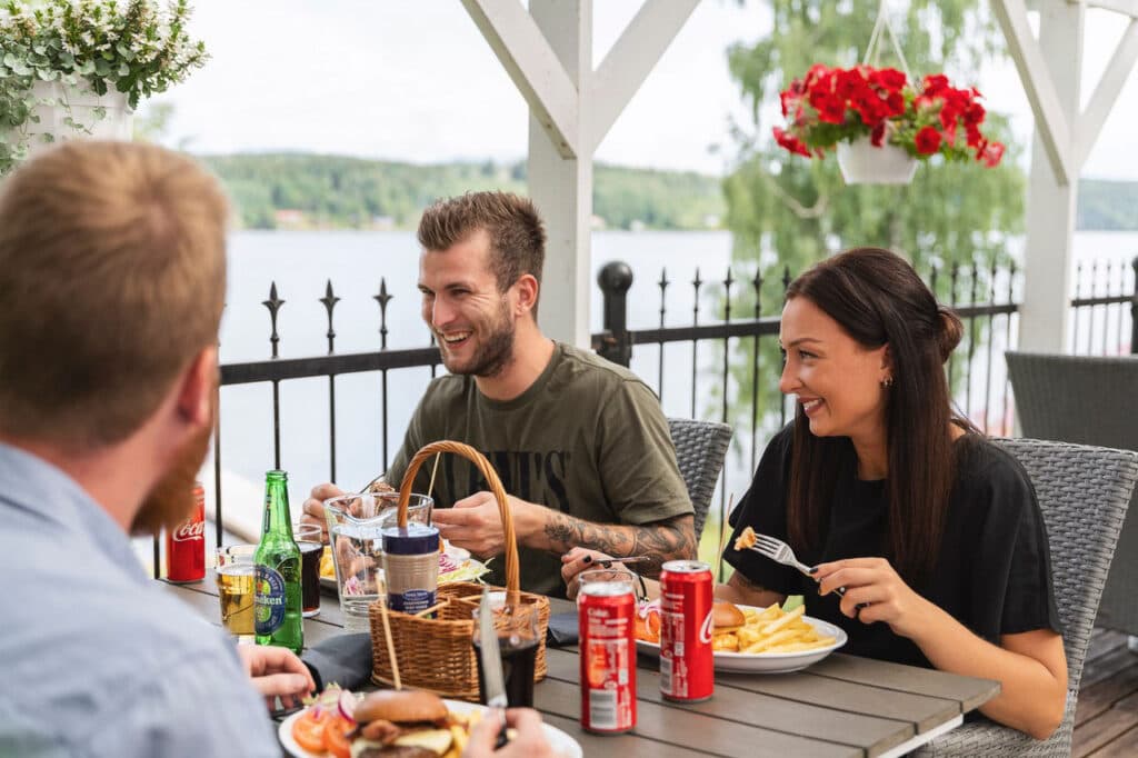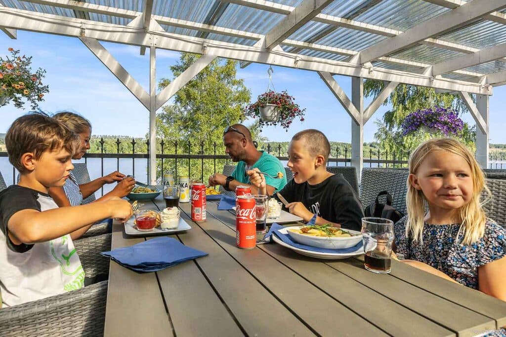 Her er en rummelig udeservering under tag med infravarme og med en skøn udsigt over søen Fryken. Restauranten har fuldstændige rettigheder og serverer à la carte. For børnene er der naturligvis også lækre retter at vælge imellem.