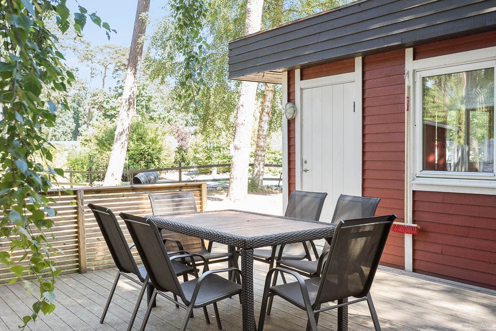 Hytten ligger nær ved eventyrgolf og aktivitetsarealer. Her kan du roligt sidde og nyde det på terrassen samtidig med at børnene har masser af sjove legealternativer kun nogle meter fra døren.